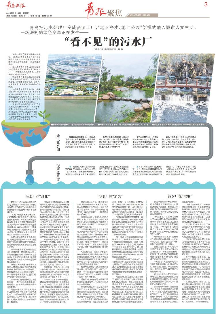 青岛把污水处理厂变成资源工厂,“地下净水、地上公园”新模式融入城市人文生活,一场深刻的绿色变革正在发生——